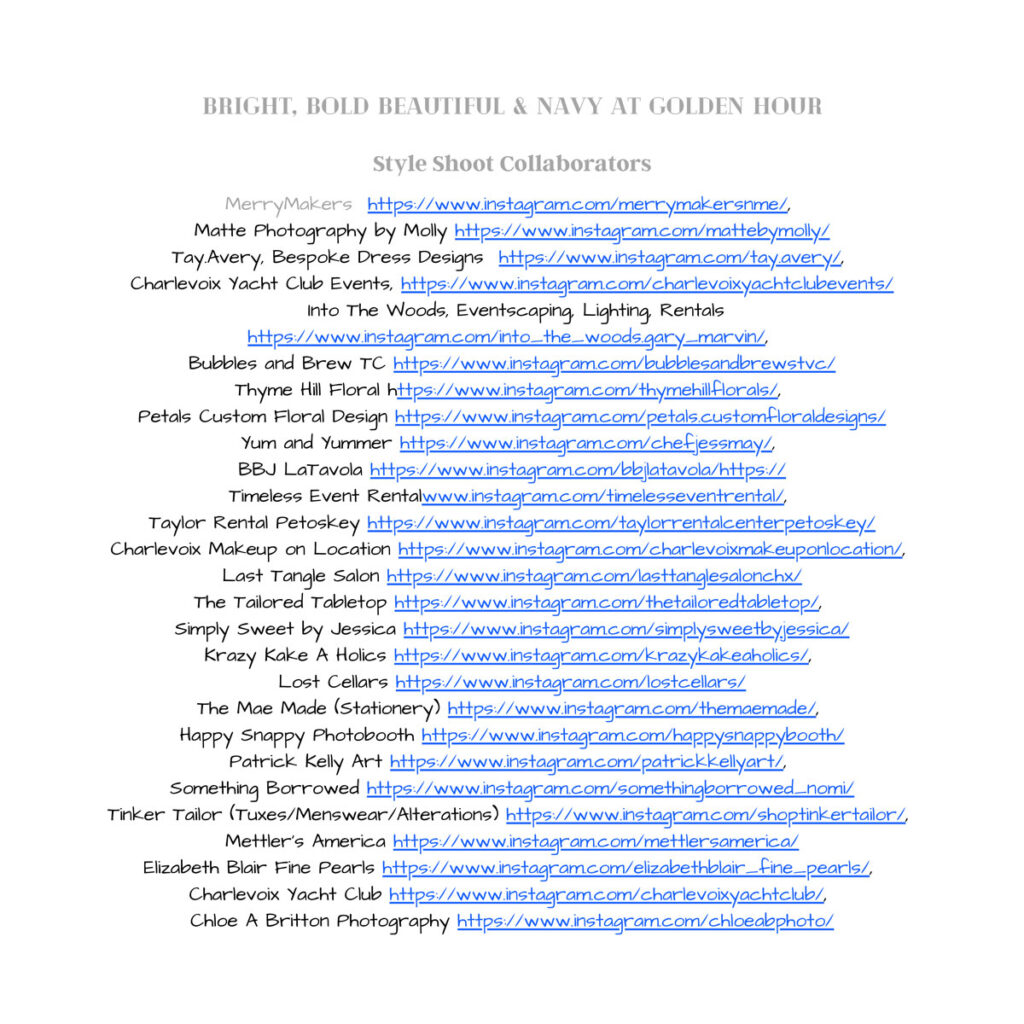 A fun shoot at the Charlevoix Yacht Club with two great couples!  A fun way to showcase local vendors and to spend a little creative time.  The styles might not ever make it to a live wedding and that’s okay.  I love embracing all the ideas and visions that our couples bring to the table.